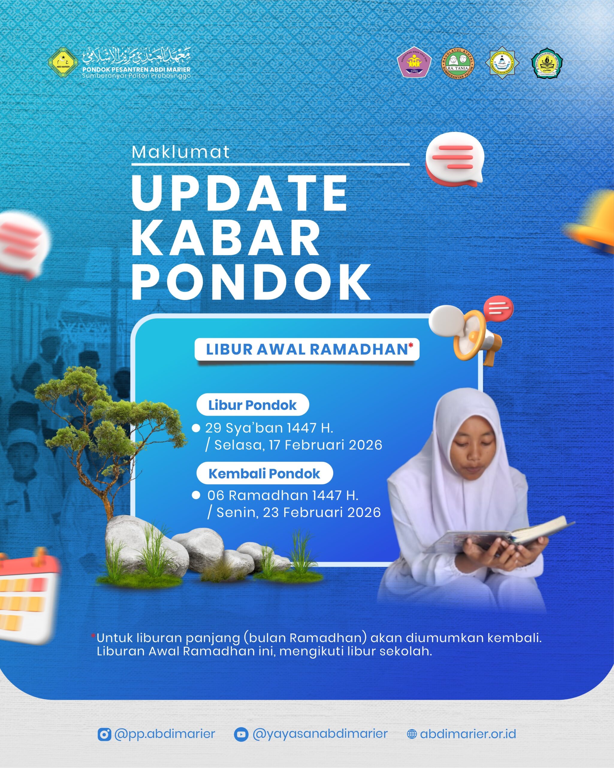 Sehubungan dengan datangnya bulan suci Ramadhan 1447 H, serta mengikuti jadwal libur sekolah, maka kami sampaikan kepada seluruh santri/wali santri bahwa: